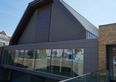 The arts centre at Sherborne girls school was a new build development, driven by the need for a dedicated performance space for drama in which to gather the whole school and develop music further. Set within the southward sloping landscape the feature curtain walling houses glass weighing 350kg, which was installed with precise handling with the use of a spider crane and our professional team of installers.